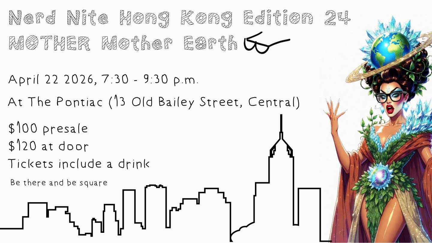 Event: Nerd Nite Hong Kong X The Pontiac Date: 23nd April 2025 (Wednesday) Time: 7:30 – 9:30 p.m. Location: 13 Old Bailey Street, Central Entry Fee: 100 at presale (with a drink), 120 at the door (with a drink)